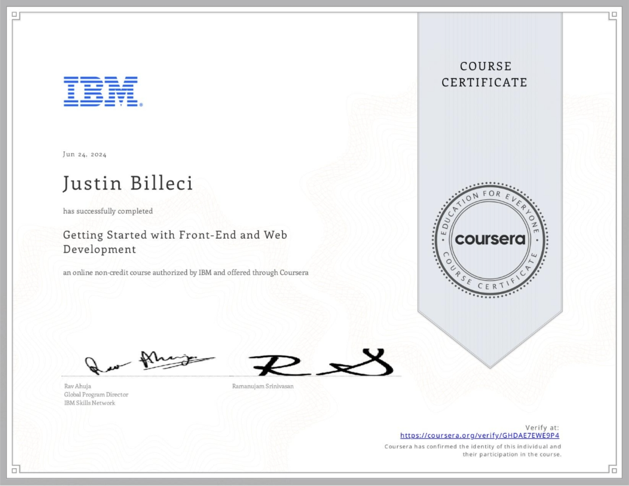 IBM Front End Developer Certification